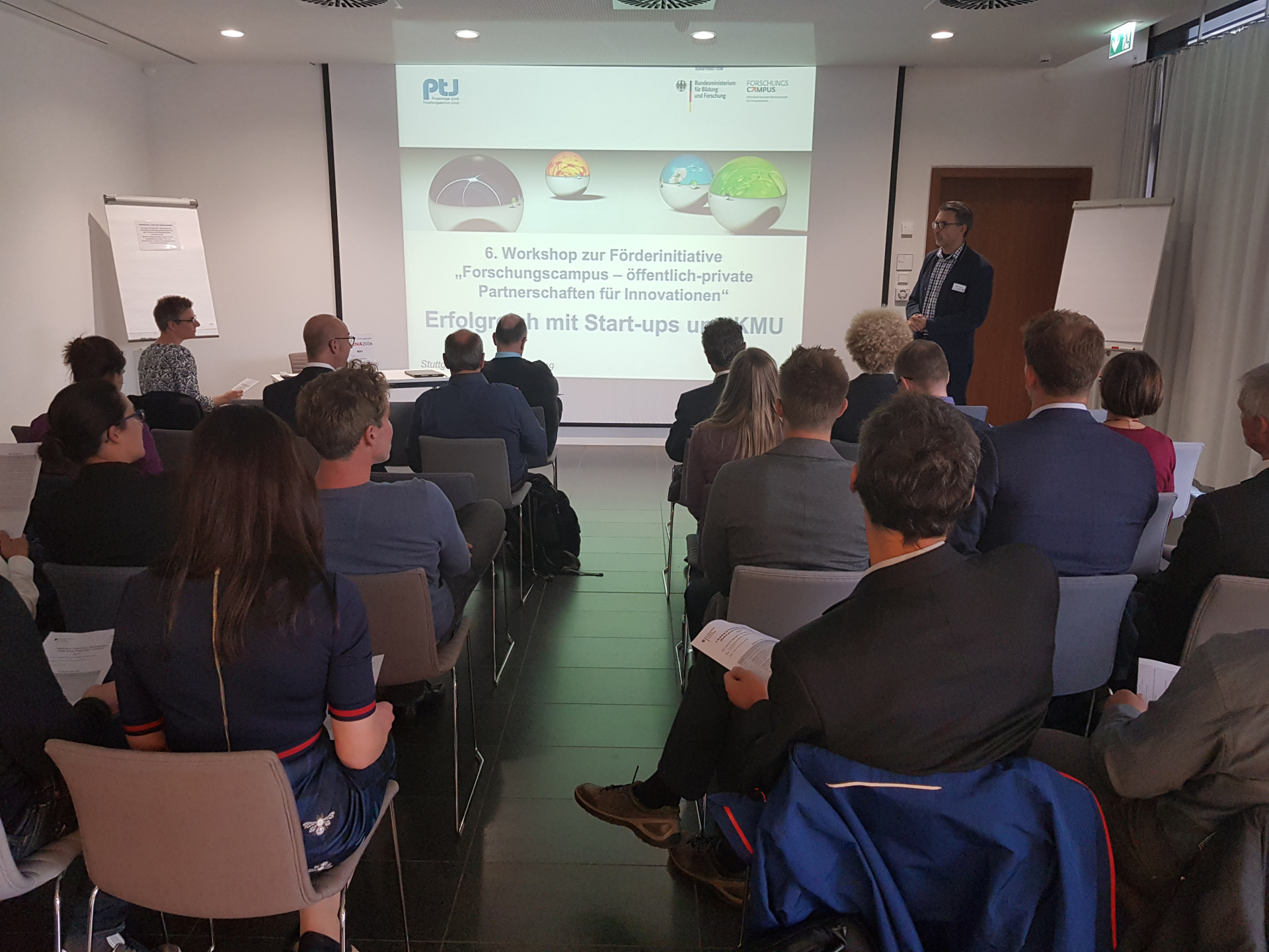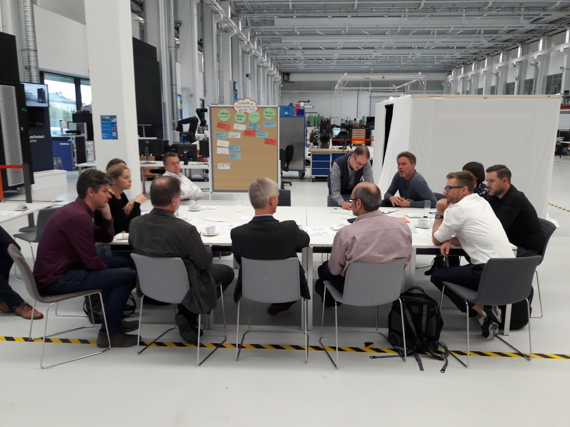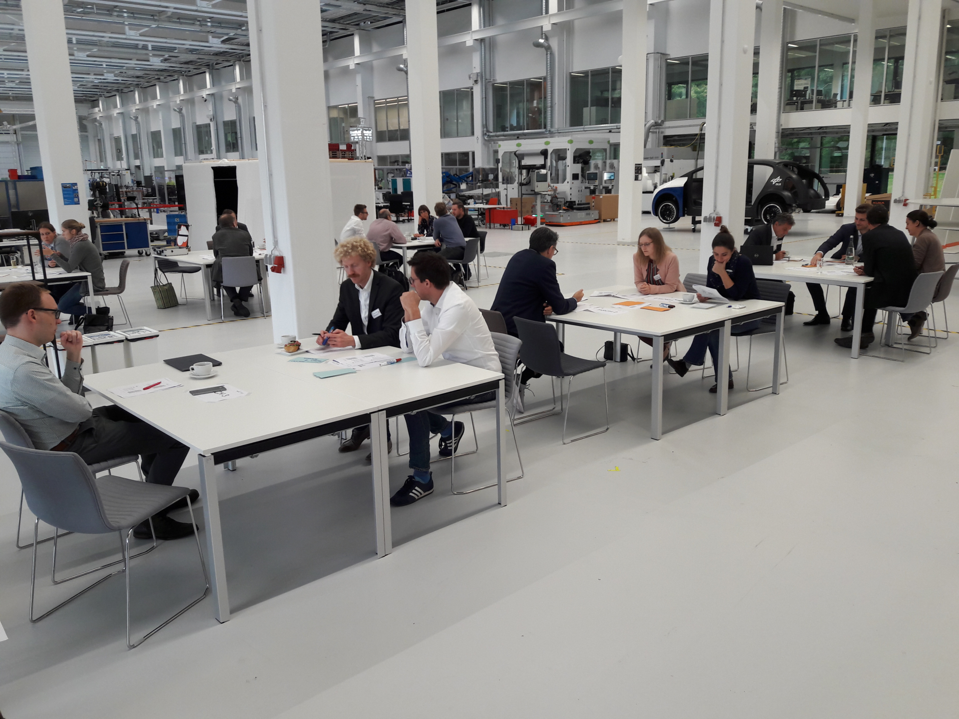 In der sogenannten flexiblen Forschungsfabrik des Forschungscampus ARENA2036 in Stuttgart tauschten sich die Forschungscampi im Oktober 2019 über die Beteiligung kleiner und junger Unternehmen aus. Die Ergebnisse der im Vorfeld des Workshops durchgeführten Onlinebefragung zeigten, dass KMU (Kleine und Mittelständische Unternehmen) und Start-ups in den Forschungscampi als wertvolle Partner mit hohem Innovationspotential gelten.