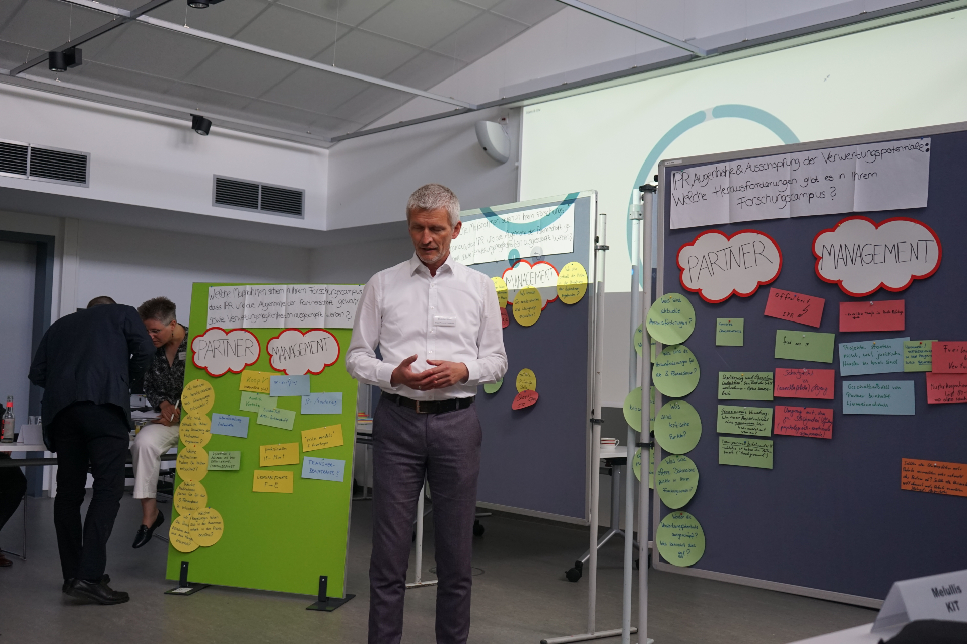 Eingebunden in den Workshop war eine Keynote mit dem Titel „Heterogene Forschungspartnerschaft, IP und FuE-Kooperationsverträge: klassische Fälle und Fragen“, gehalten von Prof. Dr. Klaus-Jürgen Melullis (Mitglied der Jury „Forschungscampus“) sowie ein Vortrag über „Internationales Patentwesen und Verwertung“, gehalten von Patentrechtsanwalt Dr. Norbert Struck.